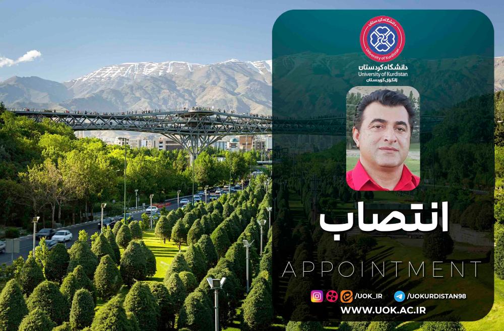 بموجب قرار صادر عن نائب عمدة طهران للخدمات الحضرية والبيئة، تم تعيين الدكتور نقي شعبانيان، عضو هيئة التدريس بقسم الغابات في جامعة كردستان، «مشرفاً على معاونية تنمية الغابات والحزام...