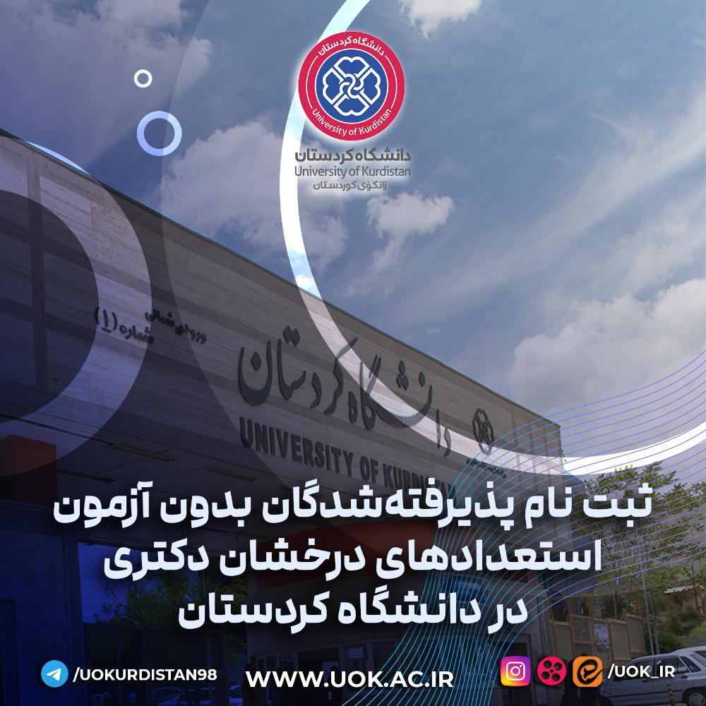 Congratulations to all candidates admitted to the Ph.D. program for the 2025-2026 academic year through the Exceptional Talents (exam-exempt) track. Please be advised that the registration process at the University of Kurdistan consists of two mandatory stages. Failure to complete either stage will be considered a formal withdrawal of your admission.